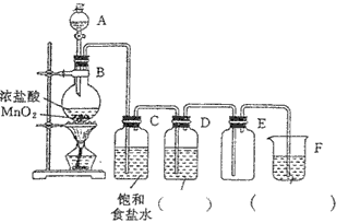 实验题 在实验室中用二氧化锰和浓盐酸反应制备干燥的氯气,装置图如下: