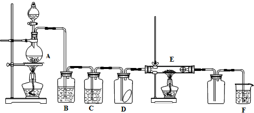 实验题 下图为实验室制取纯净、干燥的Cl2,并进行检验Cl2性质实验的装置。其中D瓶中放有干燥红色布条;E中为铜网,E右端出气管口附近为石棉球。