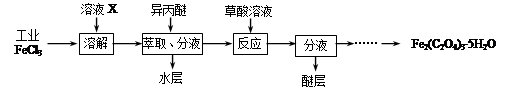 5、填空题 三氯化铁是合成草酸铁的重要原料。 ⑴利用工业FeCl3制取纯净的草酸铁晶体[Fe2(C2O4)3·5H2O]的实验流程如下图所示: