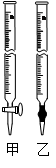①为抑制FeCl3水解,溶液X为?????。 ②上述流程中FeCl3能被异丙醚萃取,其原因是?????;检验萃取、分液后所得水层中是否含有Fe3+的方法是?????。 ③所得Fe2(C2O4)3·5H2O需用冰水洗涤,其目的是?????。 ④为测定所得草酸铁晶体的纯度,实验室称取a g样品,加硫酸酸化,用KMnO4标准溶液滴定生成的H2C2O4,KMnO4标准溶液应置于如图所示仪器?????(填“甲”或“乙”)中。下列情况会造成实验测得Fe2(C2O4)3·5H2O含量偏低的是?????。