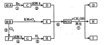 4、简答题 A和B是具有相同碳原子数的一氯代物,A-I转换关系如图所示: