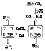 2、填空题 (16分)直接排放煤燃烧产生的烟气会引起严重的环境问题,将烟气通过装有石灰石浆液的脱硫装置可以除去其中的二氧化硫,最终生成硫酸钙。硫酸钙可在下图所示的循环燃烧装置的燃料反应器中与甲烷反应,气体产物分离出水后得到几乎不含杂质的二氧化碳,从而有利于二氧化碳的回收利用,达到减少碳排放的目的。
