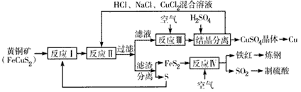 注:反应Ⅱ的离子方程式为Cu2+ +CuS+4Cl- ==2CuCl2-+S? ?请回答下列问题: