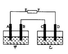 | D | 石墨 | 石墨 | HCl | a、b极都放出无色气体 ? 2、填空题 如图为相互串联的甲乙两个电解池,E、F为直流电源的两个电极。乙池溶液是滴有酚酞的食盐水电解过程中,发现电极D附近先变红。请回答: 3、选择题 如图中a、b是惰性电极,通电2min后b电极附近溶液呈红色,b电极生成标准状况时的气体体积为0.224L,NaCl溶液体积为500mL,下列说法不正?确?的是( ) 4、填空题 工业上生产氯气常用电解槽中电解饱和食盐水,为了避免电解产物之间发生反应,常用阳离子交换膜将电解槽隔成两部分。下图(左图)为电解槽的示意图。 5、选择题 用铂电极电解CuSO4溶液,当c(Cu2+)降至原来的一半时停止通电,则加入下面物质能使溶液恢复成原来浓度的是 [???? ] A.无水CuSO4 B.CuO C.Cu(OH)2 D.CuSO4·5H2O |