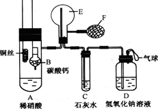 内装块状碳酸钙固体;E为一个空的蒸馏烧瓶;F是用于鼓入空气的打气球。