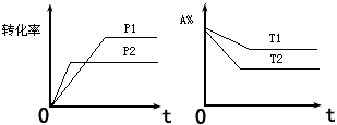 nC(g)(正反应放热),在相同温度、不同压强时,A的转化率跟反应时间(t)的关系如图所示,其中结论正确的是