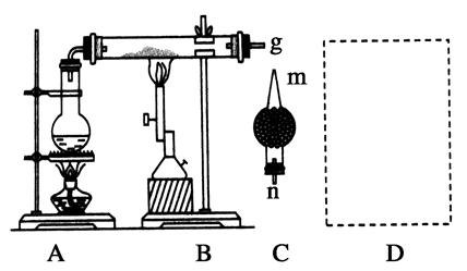 | Fe2+ | 5.8 | 8.8 ? (1)制备FeCO3时,选用的加料方式是________(填字母),原因是_________________________________ a.将FeSO4溶液与Na2CO3溶液同时加入到反应容器中 b.将FeSO4溶液缓慢加入到盛有Na2CO3溶液的反应容器中 c.将Na2CO3溶液缓慢加入到盛有FeSO4溶液的反应容器中 (2)生成的FeCO3沉淀需经充分洗涤,检验洗涤是否完全的方法是_______________________________。 (3)将制得的FeCO3加入到足量柠檬酸溶液中,再加入少量铁粉,80℃下搅拌反应。 ①铁粉的作用是_____________________。 ②反应结束后,无需过滤,除去过量铁粉的方法是________________________________。 (4)最后溶液经浓缩、加入适量无水乙醇、静置、过滤、洗涤、干燥,获得柠檬酸亚铁晶体。分离过程中加入无水乙醇的目的是__________________。 ![]() (5)某研究性学习小组欲从硫铁矿烧渣(主要成分为Fe2O3、SiO2、Al2O3)出发,先制备绿矾,再合成柠檬酸亚铁。请结合右图的绿矾溶解度曲线,补充完整由硫铁矿烧渣制备FeSO4·7H2O晶体的实验步骤(可选用的试剂:铁粉、稀硫酸和NaOH溶液):向一定量烧渣中加入足量的稀硫酸充分反应,________,得到FeSO4溶液,________,得到FeSO4·7H2O晶体。 参考答案:(1)c 避免生成Fe(OH)2沉淀 (2)取最后一次的洗涤 本题解析:根据题干信息以及FeCO3、Fe2O3、FeSO4的性质解决问题。 本题难度:困难 3、实验题 红热的铁能与水蒸气反应,有氢气生成,现用如图所示装置进行铁在高温下与水蒸气反应的实验,并用简单的方法收集、检验生成的氢气。请回答下列问题: 参考答案:(1)3Fe+4H2O(g) 本题难度:一般 4、选择题 下列各物质不能由组成它的两种元素单质经点燃或加热直接化合而得到的是(??? ) 参考答案:C 本题解析:铁与Cl2反应产物是FeCl3。 本题难度:简单 5、填空题 (16分)在一定条件下用普通铁粉和水蒸气反应,可以得到铁的氧化物。该氧化物又可以经过此反应的逆反应,生成颗粒很细的铁粉。这种铁粉具有很高的反应活性,在空气中受撞击或受热时会燃烧,所以俗称“引火铁”。请分别用图中示意的两套仪器装置,制取上述铁的氧化物(左)和“引火铁”(右)。实验中必须使用普通铁粉和6mol/L盐酸,其他试剂自选(装置中必要的铁架台、铁夹、铁圈、石棉网、加热 参考答案: 本题难度:一般 |