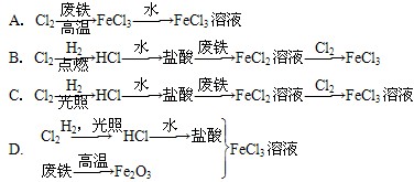 2、选择题 某氯碱厂利用废铁皮制取净水剂FeCl3溶液,最合理的生产途径是