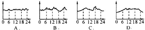5、选择题 如图,下列曲线是某环境监测小组描绘的某市中心空气中NOx含量变化曲线,横坐标表示北京时间0时至24时,纵坐标表示NOx含量,其中比较符合实际的是