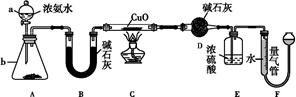 2、实验题 某课外活动小组欲利用CuO与NH3反应,研究NH3的某种性质并测定其组成,设计了如下实验装置(夹持装置未画出)进行实验。请回答下列问题: