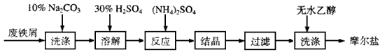 4、实验题 绿矾( FeSO4·7H2O )、硫酸铵以相等物质的量混合可制得摩尔盐晶体,反应原理为: