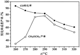 (4)有研究者在催化剂(含Cu—Zn—Al—O和Al2O3)、压强为5.0MPa的条件下,由H2和CO直接制备二甲醚,结果如下图所示。其中CO转化率随温度升高而降低的原因是?。