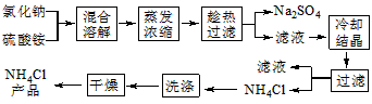 3、填空题 以氯化钠和硫酸铵为原料制备氯化铵及副产品硫酸钠,工艺流程如下
