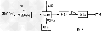 5、填空题 工业上制备BaCl2的工艺流程图如图7: 某研究小组在实验室用重晶石(主要成分BaSO4)对工业过程进行模拟实验。?