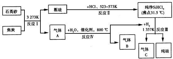 1、填空题 晶体硅可用作制芯片和太阳能电池等。下列流程图是工业上制取纯硅的一种方法。