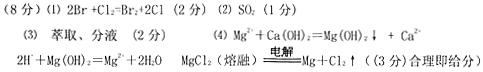 4、填空题 (8分)空气吹出法是目前从海水中提取溴的常用方法,流程如下(苦卤:海水蒸发结晶分离出食盐后的母液):