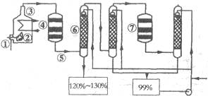 5、填空题 如图是现今常规生产发烟硫酸和硫酸的流程图: