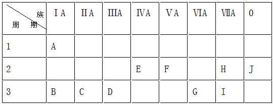根据A-J在周期表中的位置,用元素符号或化学式回答下列问题: