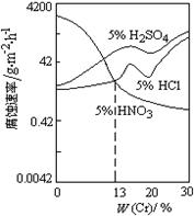 2、选择题 如图是稀酸对Fe-Cr合金随Cr含量变化的腐蚀性实验结果,下列有关说法正确的是