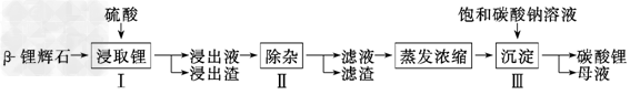 4、填空题  碳酸锂广泛应用于陶瓷和医药等领域,以β?锂辉石(主要成分为Li2O·Al2O3·4SiO2)为原料制备Li2CO3的工艺流程如下: