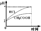 5、选择题 在体积均为1L,pH均等于2的盐酸和醋酸溶液,分别投入0.23g Na,则下图中比较符合反应事实的曲线是