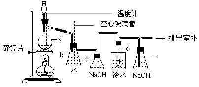 cm-3,沸点131.4℃,熔点9.79℃,难溶于水,易溶于醇,醚,丙酮等有机溶剂。在实验室中可用如下图所示设备制备1,2-二溴乙烷。图中分液漏斗和烧瓶a中装有乙醇和浓硫酸的混合液,试管d中装有液溴(表面覆盖少量水),据此请回答下列问题: