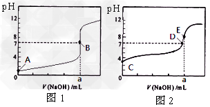 2、选择题 常温下,用0.1000?mol/L?NaOH溶液分别滴定20.?00?mL?0.1000?mol/L?盐酸和20.?00?mL?0.1000?mol/L?醋酸溶液,得到2条滴定曲线,如下图所示。下列说法正确的是(A-表示Cl-或