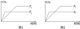 C.两容器达平衡后升高相同的温度,两容器中物质D的体积分数随温度变化如图2所示