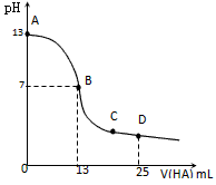 5、填空题 常温下,向25 mL 0.1 mol/L MOH溶液中逐滴加入0.2 mol/L HA溶液,曲线如图所示(体积变化忽略不计)。回答下列问题