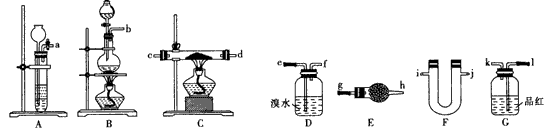 4、实验题 某同学根据题目提示和要求选择下列仪器设计实验,验证: Zn+2H2SO4 (浓) ZnSO4+SO2↑+2H2O; Zn+H2SO4(稀)==ZnSO4+H2↑ 提示和要求: ①供选用的试剂有:98%浓硫酸,锌粒,氧化铜,碱石灰,无水硫酸铜,溴水,品红试液,碱石灰, ②二氧化硫具有还原性,可能与金属氧化物发生还原反应; ③E和F仪器同时使用; ④仪器可以重复使用.