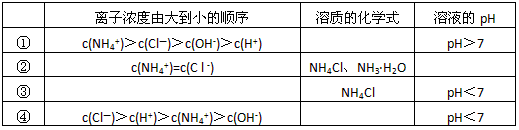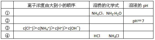 (2)在下表中,分别讨论了上述实验过程中离子浓度的大小顺序、对应溶质的化学式和溶液的pH。试填写表中空白: