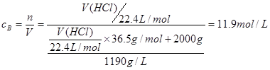 (2)将多少升氯化氢(标准状况)通入2.00L水中可得36.5%的浓盐酸?