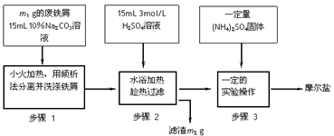 (2)步骤3中,加入(NH4)2SO4固体后,要得到摩尔盐晶体,需经过的实验操作包括:加热蒸发、