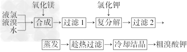 4、填空题 溴酸钾(KBrO3)为白色晶体,是一种常用的氧化剂和分析试剂,加热到370℃时分解为溴化钾和氧气.生产溴酸钾的工艺流程如下:
