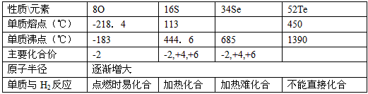 3、填空题 归纳整理是科学学习的重要方法之一。在学习了元素周期表之后,有关氧族元素的各种性质,可归纳整理出如下表所示的表格(部分)。