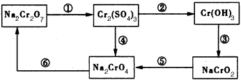 5、填空题 铬是水体的主要污染物之一,可以导致水生生物死亡。化学实验中,若使某步中的有害产物作为另一步的反应物,形成一个循环,就可不再向环境排放该有害物质。例如处理铬的实验循环示意图如下