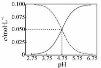 B.常温下醋酸和醋酸钠混合溶液中c(CH3COOH)、c(CH3COO-)与pH值的关系如图所示,当pH=4.5溶液中:c(CH3COO-)>c(CH3COOH)>c(H+)>c(OH-)