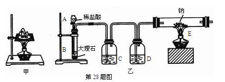 2、填空题 如图甲所示,某同学将一小块钠放在石棉网上加热,观察到生成的产物除了淡黄色固体外还有一些黑色固体物质,当时他想这种黑色物质应该是钠表面吸附的煤油不完全燃烧产生的碳单质,但在学习了镁与C02的反应后,该同学想:就金属活动性而言,Na比Mg还强,该黑色物质是否是Na与C02反应生成的碳单质。为了验证自己的想法,该同学利用装置乙进行实验。