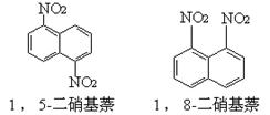 选择题 在一定条件下,萘可与浓硝酸、浓硫酸两种混酸反应生成二硝基化合物,它是1,5-二硝基萘和1,8-二硝基萘的混合物。