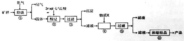 实验题 某矿样含有大量的CuS、 少量铁的氧化物及少量其它不溶于酸的杂质。某化学课外小组设计以下流程,取该矿样为原料生产CuC12·2H2O晶体。