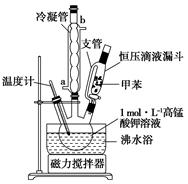 【制备产品】 30.0 mL甲苯和25.0 mL 1 mol·L-1高锰酸钾溶液在80℃下反应30 min,装置如图所示: