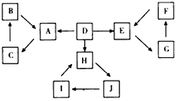 4、推断题 A、B、C、D、E、F、H、I、J有如图所示的转化关系。图中所有物质均由短周期元素组成,且每个小三角形内的三种物质均至少含有第三周期中的一种相同元素。其他信息见下表
