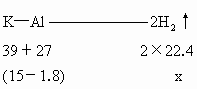 1、计算题 (6分)向100mL水中投入金属钾和金属铝共15g,充分反应后发现有剩余金属1.8g,求反应中共放出氢气多少毫升?(标准状况)