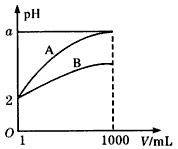 2、选择题 pH=2的A、B两种酸溶液各1mL,分别加水稀释到1000mL,其中pH与溶液体积V的关系如图所示,下列说法正确的是