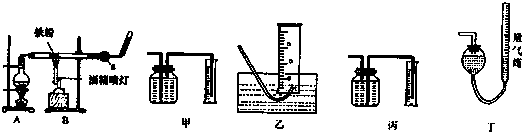 ①该同学应该先点燃______(填“A”或“B”,下同)处的酒精灯(或酒精喷灯),一段时间后,再点燃______处的酒精灯(或酒精喷灯);测量气体体积不可以选用上图中的______装置(填“甲”、“乙”、“丙”或“丁”).