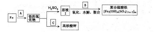 4、填空题 铁及其化合物有重要用途,如聚合硫酸铁[Fe2(0H)n(S04)3-n/2]m是一种新型高效的水 处理混凝剂,而高铁酸钾(其中铁的化合价为+6)是一种重要的杀菌消毒剂,某课题小组设 计如下方案制备上述两种产品: