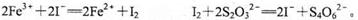 (4)为测定溶液I中铁元素的总含量,实验操作:准确量取20.00mL溶液I于带塞锥形瓶 中,加入足量H2O2,调节pH<3,加热除去过量H2O2;加入过量KI充分反应后,再用0.1000mol.L-1Na2S2O3标准溶液滴定至终点,消耗标准溶液20.00mL。