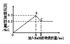 至过量。经测定,加入的NaOH的物质的量和所得沉淀的物质的量的关系如下图所示。则: