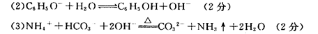 ?NH4 ++OH-;NaHCO3=Na ++ HCO3-(各3分)