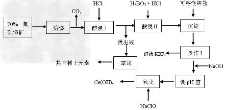 (2)酸浸II后,四价铈转化为三价,为了避免三价铈以四氟硼酸盐形式损失,用可溶性钾盐将四氟硼酸根沉淀除去,该反应的离子方程式为_____________________________